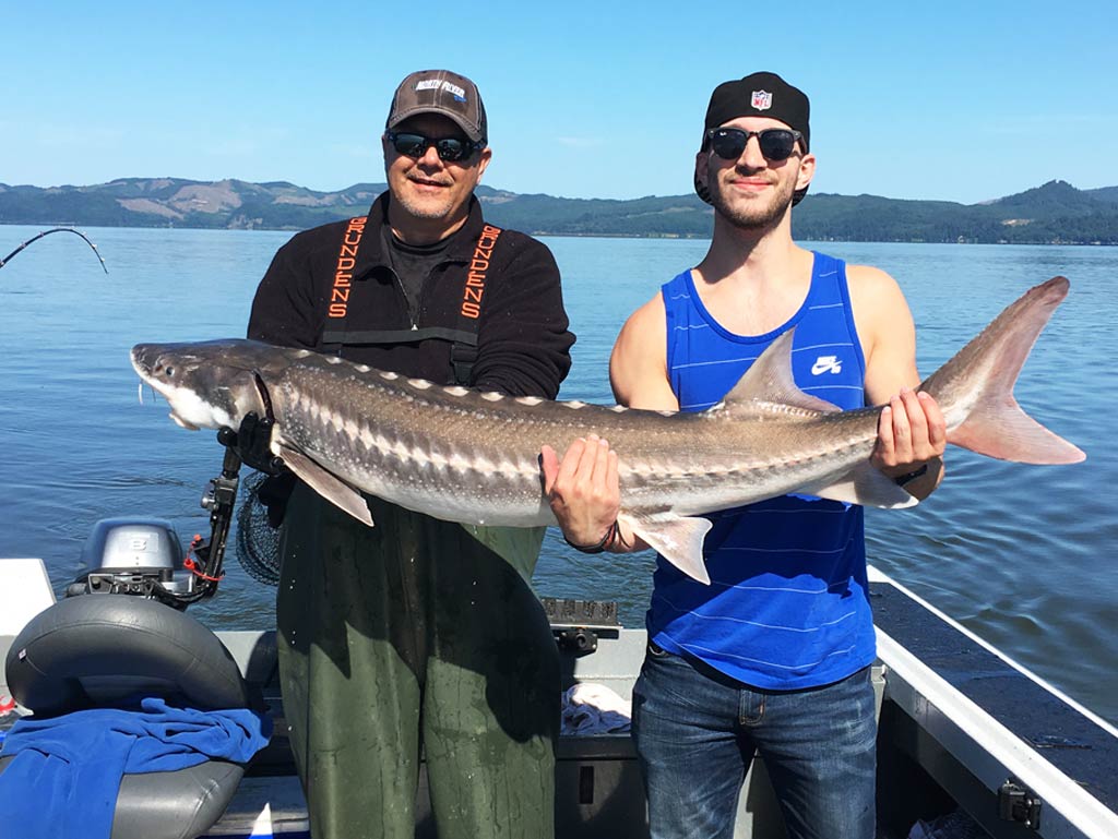 Big water, big fish. Chinook salmon and sturgeon trips in the Columbia River Gorge, Skamania County.